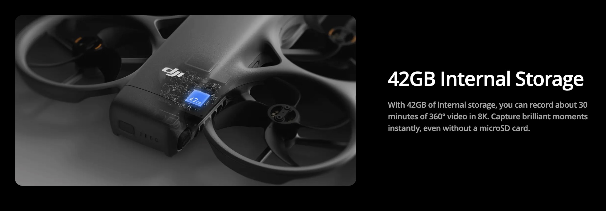 Equipped with forward-facing LiDAR, Avata 360 features nightscape omnidirectional obstacle sensing in 360° mode, effective even during dynamic tracking shots. The integrated propeller guard adds another layer of safety.