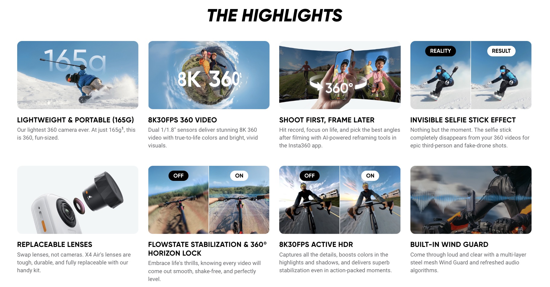 Dual lenses capture every second of the family fun, all angles of your favorite spot, and every highlight in stunning 8K30fps. Finally, no one is stuck behind the camera.