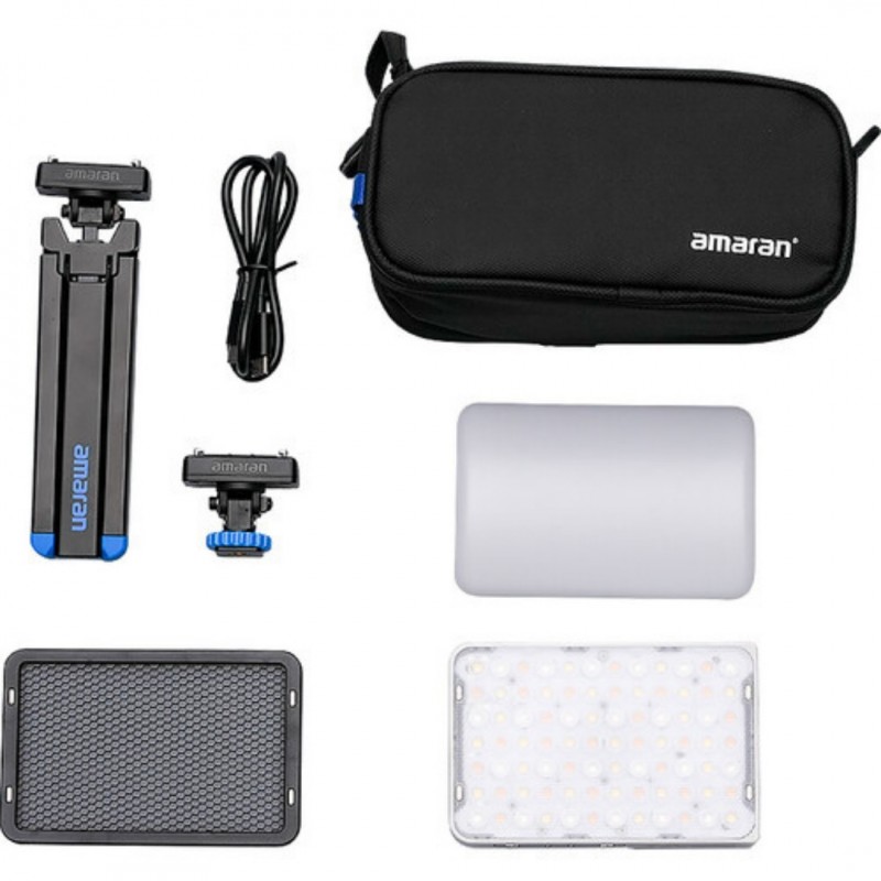 Assembled for content creators, vloggers, and influencers, this Ace 25c RGB LED Light Panel All-in-One Creator Kit from Amaran bundles the versatile and lightweight LED light panel with a 30° grid, mini tripod, lock-to-cold shoe adapter, carrying bag, and other accessories.