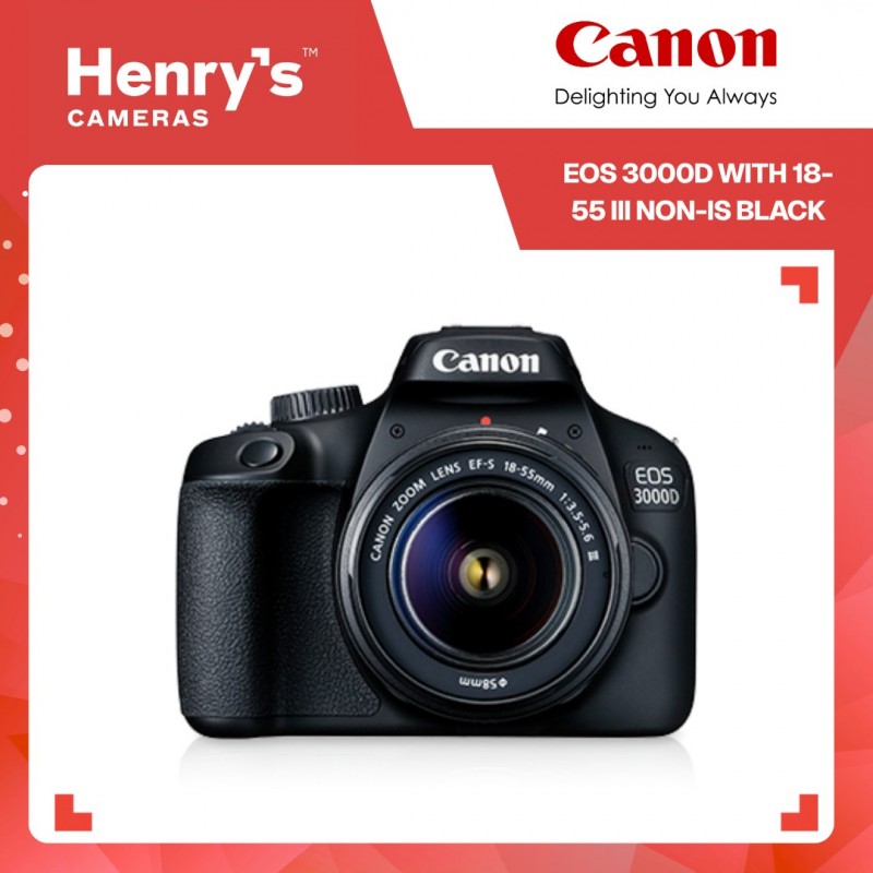 EOS 3000D is one of the most affordable choices for beginners to experience the powerful and reliable performance of EOS optical technologies. It features a 18-megapixel APS-C format Canon CMOS sensor for easy creation of images with beautiful background blur. Coupled with DIGIC 4+ digital image processor with high-speed 14-bit image processing for fine gradation and vivid color reproduction, high-quality landscapes and portraits can be captured with ease. The camera also offers a standard ISO range of ISO 100-6400, expandab