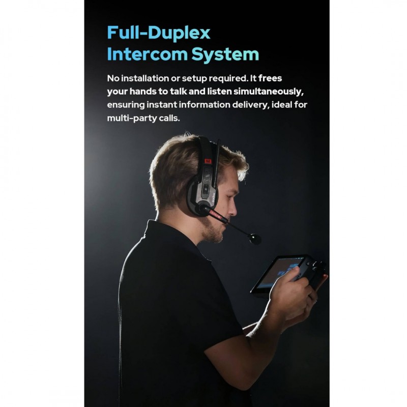 The Godox SkyTalk Air 5S is a full-duplex wireless intercom system designed to keep small to mid-size teams connected with clear, hands-free communication. This configuration includes five single-ear headsetsâ¿¿the maximum number the system will allowâ¿¿and delivers real-time, two-way conversation with no installation or setup required. With long battery life, environmental noise cancellation, and a lightweight single-ear design, the SkyTalk Air 5S is well suited for film crews, live streaming, weddings, aerial shoots, and other coordinated product.