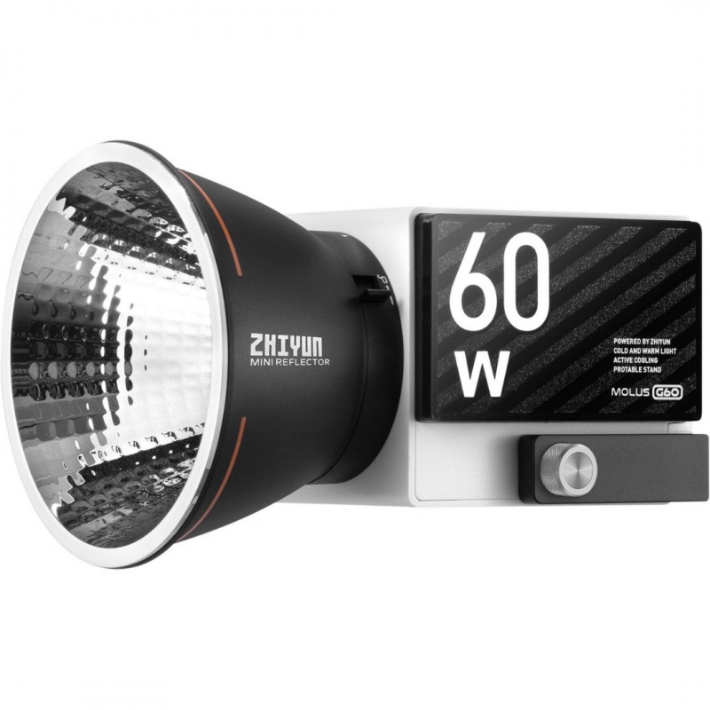 | In The Box | Zhiyun MOLUS G60 Bi-Color Pocket COB Monolight (Combo Kit), Mini Reflector, Power Adapter and Cable, Bag for Power Adapter, Dome Diffuser, Storage Bag, Mini Tripod, Bowens Mount Adapter, Mini Softbox with Grid |