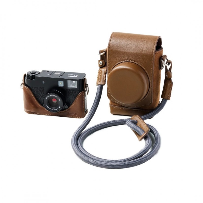 The Leather Camera Case for FUJIFILM X half from SmallRig is a full-coverage camera bag that matches the elegant vintage styling of the FUJIFILM X half digital camera. It includes a custom-fitted half case with an integrated grip to improve camera handling, stability and comfort. The bag and half case are each made of genuine leather and feature elegant stitching details. The bag includes card slots for keeping credit cards and ID handy when you're traveling light. It also has robust metal strap loops to attach the included braided shoulder strap for easy carrying.