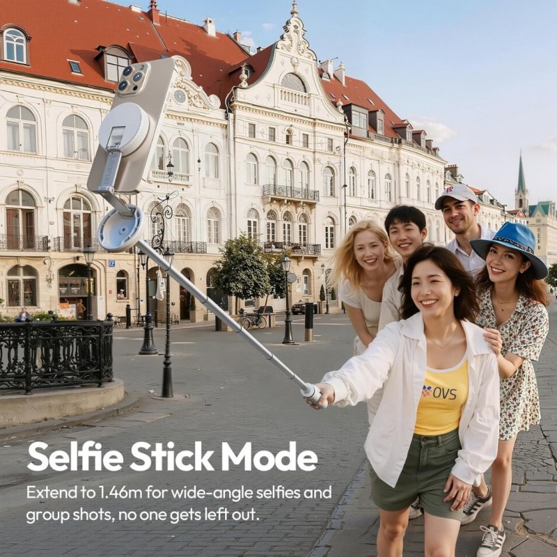 • Comes with a detachable, rechargeable wireless remote that works up to 10 meters. It pairs quickly with both iPhone and Android, letting you take group photos or self-timer shots from a distance with ease.