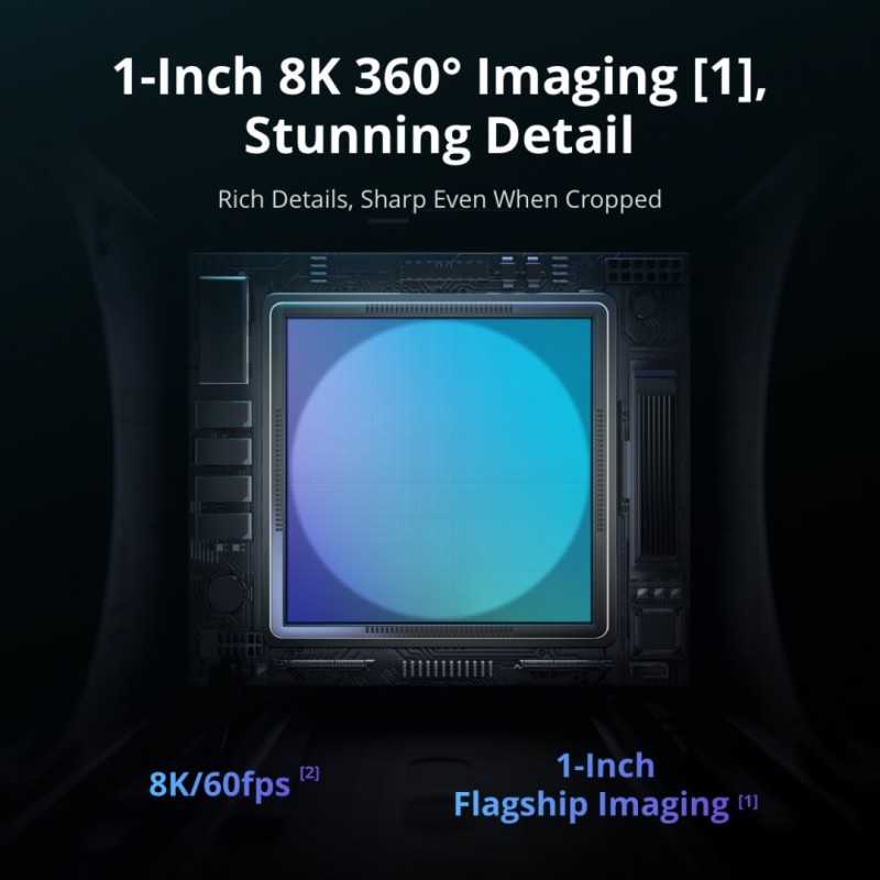 With 1-inch-equivalent sensors, large 2.4 μm pixels, and high dynamic range, light and shadow are captured with exquisite clarity. 8K/60fps HDR 360° video provides sufficient resolution for sharp cropped shots.