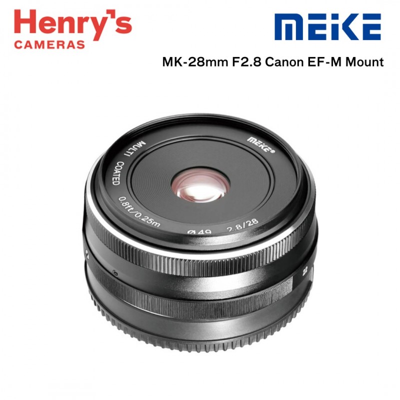 Characterized by its especially slim design, the MK-28mm f/2.8 Lens from Meike is a Canon EF-M-mount prime offering a 44.8mm equivalent focal length. The modest f/2.8 maximum aperture promotes a thinner, pancake-like form factor that is ideal for travel and everyday use. Individual lens elements feature a multi-layer nano coating to control surface reflections, flare, and ghosting in order to realize a high degree of contrast and color accuracy, even when working in bright and backlit conditions. Additionally, the lens sports a manual focus design for working with subjects as close as 9.8" away.