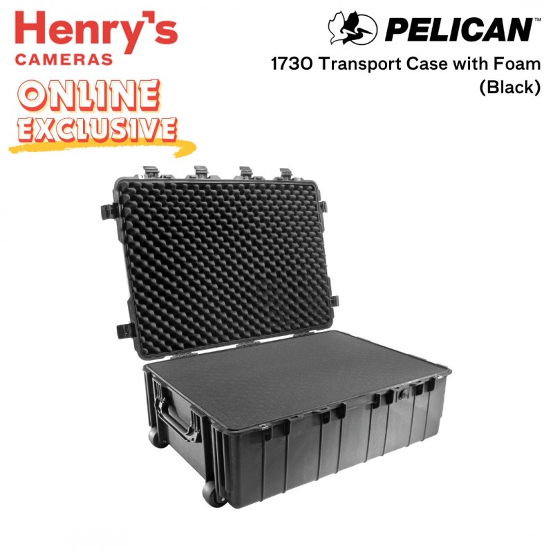 The Pelican 1730 Transport Case with Foam (Black) is a watertight, crushproof. and dust proof polypropylene case. It has six easy open ABS double throw latches with stainless-steel padlock protectors. It has an O-ring and an automatic pressure release valve with a temperature rating -10 to 210°F. There are double-grip fold down handles on each side, and polyurethane wheels with stainless-steel bearings.